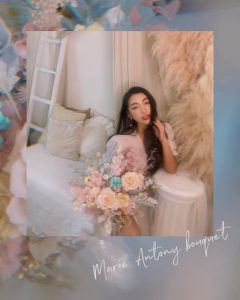 整束捧花的設計以甜美繽紛充滿春天氣息的粉嫩色調