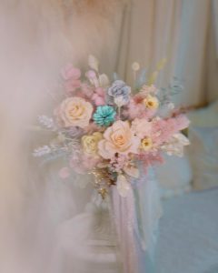 加入粉紅棉花與馬卡龍Tiffany綠花材